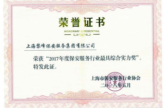 2018年10月 榮獲上海市公安局頒發的“保安服務行業綜合實力企業獎”
